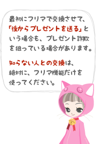 事務局では、フリマ機能を使わないアイテム交換を推奨していません。