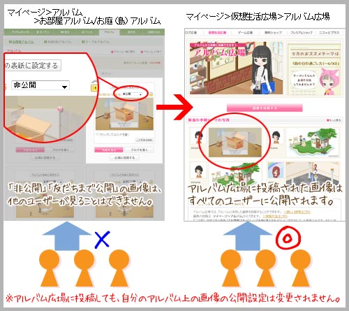(アルバム内の設定は変更されません。アルバム広場に投稿されている画像でも、