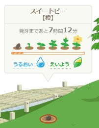 ガーデン島の種は、大きく分けて6つの成長段階があります。 種 > 発芽 > 若葉 > 本葉 > つぼみ > 開花 ※段階は、草花によって多少違う場合があります。 ガーデンボックスで、成長中の草花にマウスオーバーすると、 現在の成長段階と、次の段階までの所要時間が確認できます。