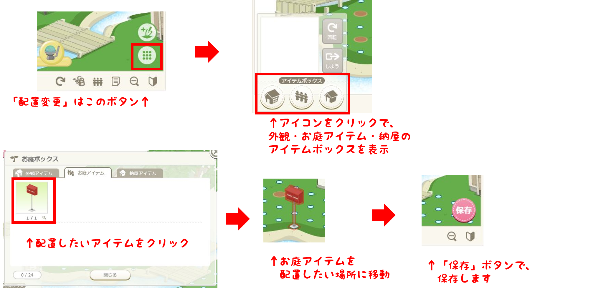 ※各アイテムには、お庭に配置できる上限や場所が決まっています。