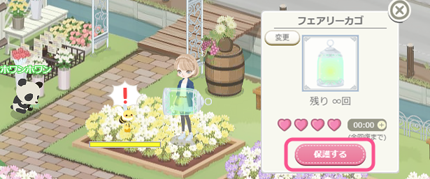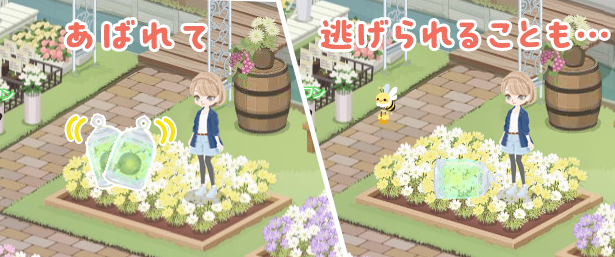 δ 「!」が表示されたタイミングでクリックすると、フェアリーカゴで捕まえて成功です。