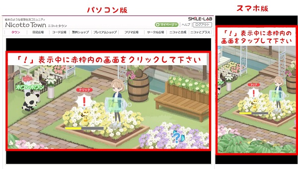 ※現在、テスト版のため、ニコリーが出現する仮想タウンの広場は、