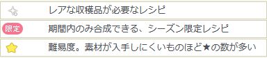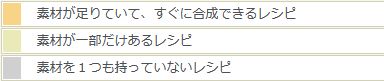 そのレシピの合成アイテムを作る難しさを、3段階で表しています。