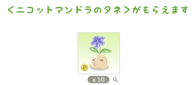特典アイテムとして【きせかえアイテム】【ガーデニングの種】【合計で5000コイン】がもらえます。