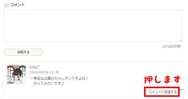 ①返信したいコメント右下の「コメントに返信する」をクリック